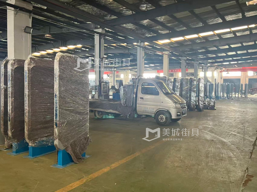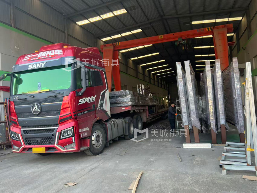 江蘇美城街具供應葫蘆島第二批候車亭公交站臺發(fā)貨案例,以下是候車亭站臺發(fā)貨現(xiàn)場圖: